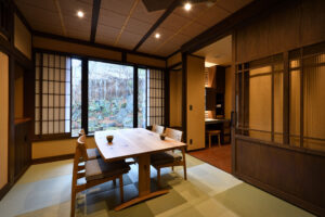 全9室の小さな宿でございます。ごゆっくりお寛ぎいただける空間を目指し、「客室にはお呼びがあるまで伺わない」「大浴場はなく貸切の風呂のみ」などを実践しております。