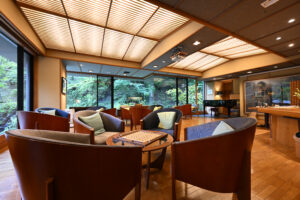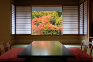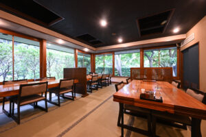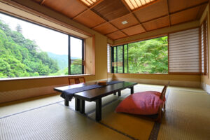 緑の山々が見渡せる落ち着いた趣きの翆明館は特別和室、和洋室、