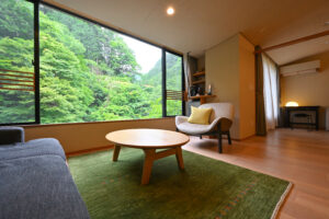 せせらぎが清風を呼ぶ客室は、ゆったりとした旅気分を演出します。