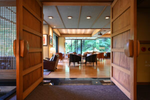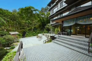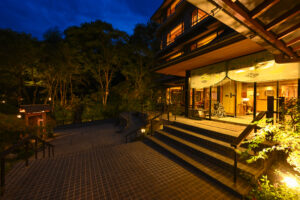 そこにある「大松閣」は都心から一時間余りの木の温もりが感じられる癒しの宿です。「木になる郷」に足を踏み入れた途端、森林浴が始まります。