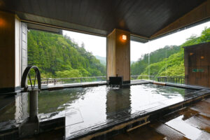 大浴場には露天風呂の男性用「天の川」女性用「銀河」がございます。山々を眼前に控える眺望豊かな浴場です。